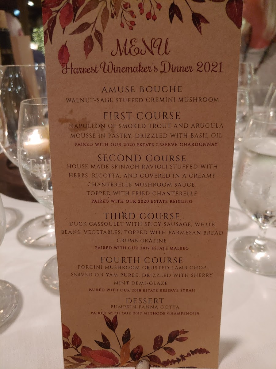 Porcini seasoned duck breast pan seared, topped with a cherry, coffee Demi glace, with sauteed cremini mushrooms. Served with seasonal vegetables and brown butter-Parmesan fingerling potatoes.